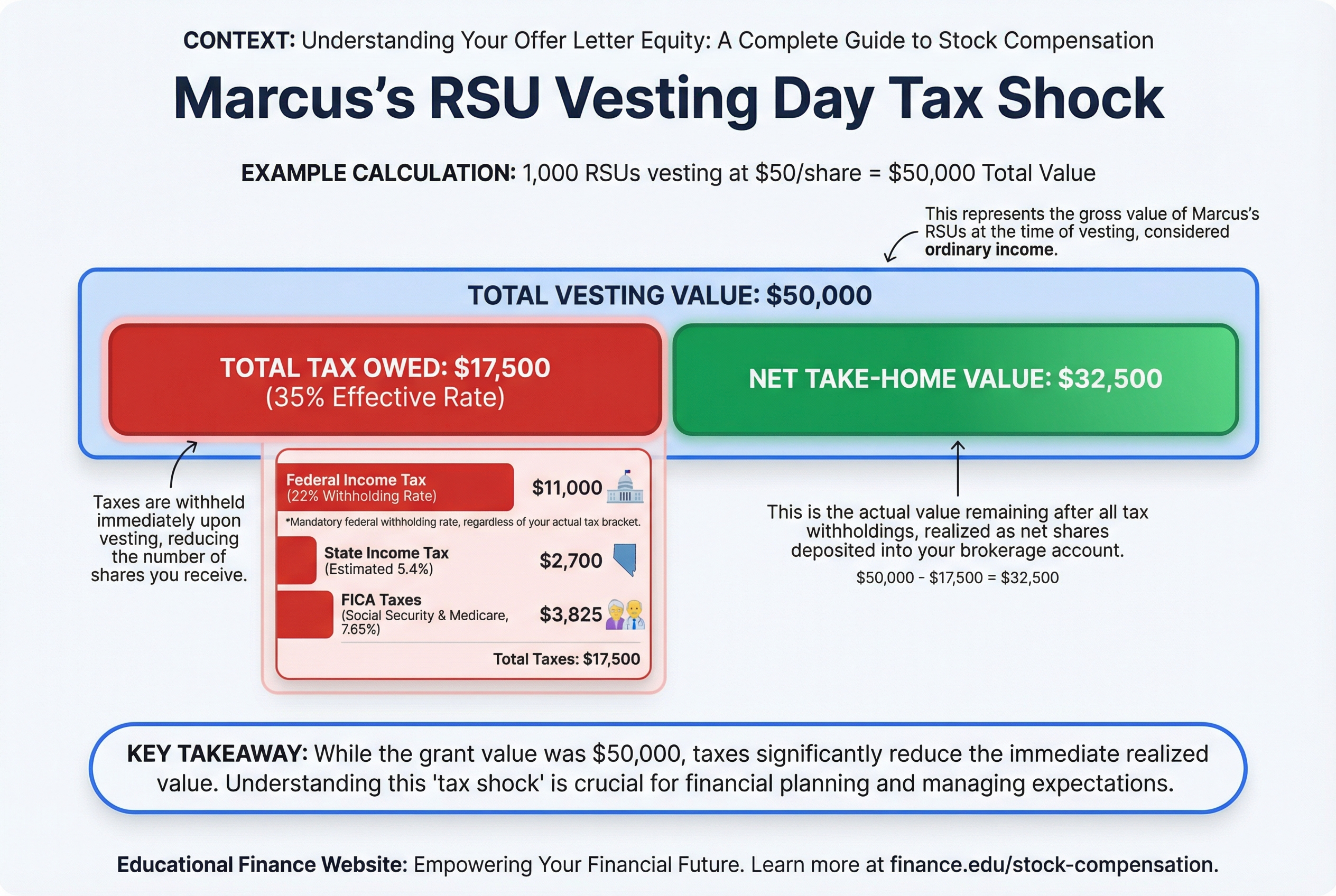 But here's the catch: the moment shares vest, you owe taxes on them. We'll cover that surprise in a later section.
